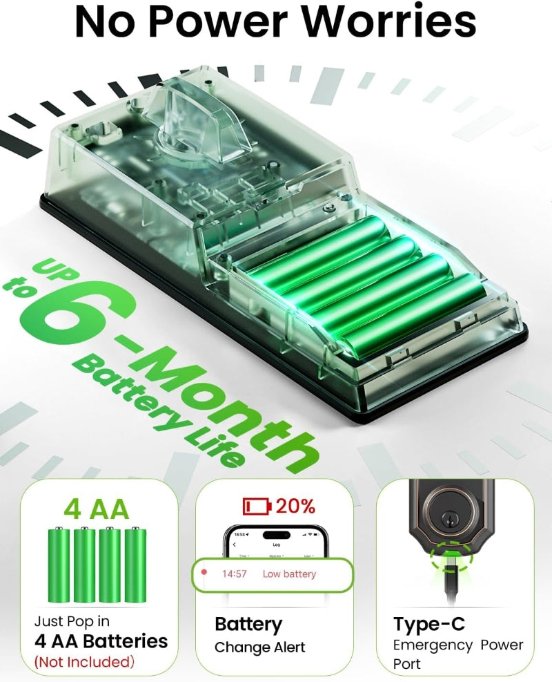 - Biometric door lock: Your finger is the key! Featuring AI self-learning, this fingerprint lock achieves up to 99.99% recognition accuracy, identifying your fingerprint in just 0.3 seconds and unlocking in 1 second. Say goodbye to traditional keys.
