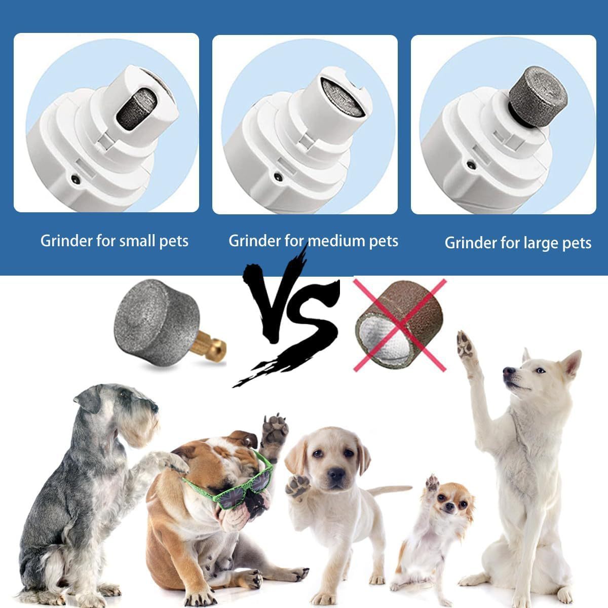 • 3 size nail grinding ports choose: This pet nail grinder provides 3 size ports for small, medium, or large pets. Simply choose the appropriate port depending on your pet’s size and nail hardness. It ensures smooth and quick grinding for cats and dogs.