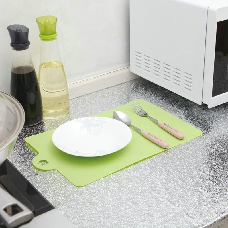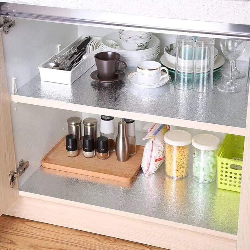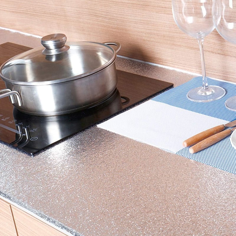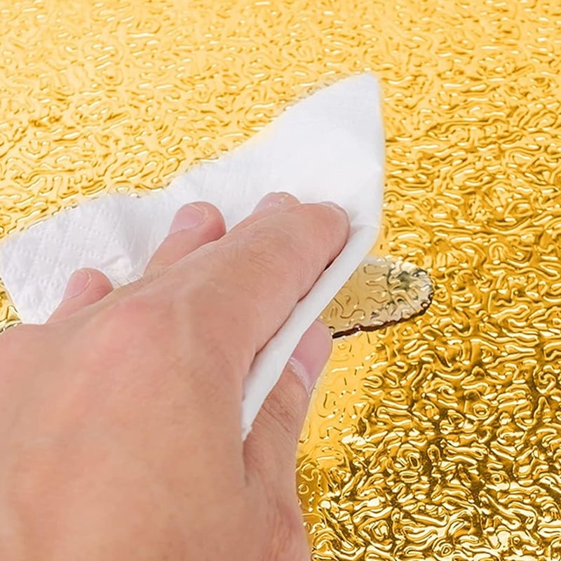 • Design: The surface of the contact paper features an orange-peel-like textured pattern, which helps prevent liquids from flowing and pooling; it is made of high-quality aluminum foil material with a metallic finish.