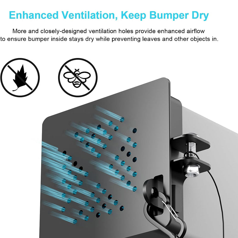 Air vents design: Features small but more ventilation holes that prevent moisture and odor buildup while blocking bugs, wasps, and rodents from entering the bumper.