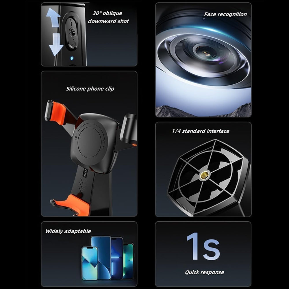 • Advanced smart ai facial recognition technology: Automatically detects and follows your face in real-time, ensuring you stay perfectly centered in every shot, hands-free, live broadcasts, and multi-angle adjustments up and down.