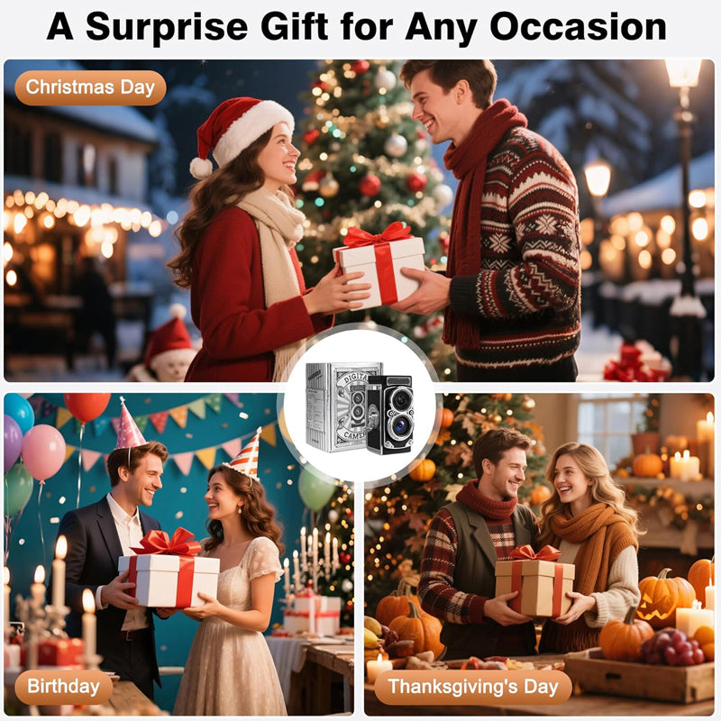 • Ideal gift choice: The package includes a vintage camera, a SD card, a stylish lanyard, and a Type-C cable, all neatly packed in an exquisite gift box. It's the perfect gift for boys, girls, and teens on birthdays, Christmas, or any special occasion. It will bring a lot of joy and record lasting memories