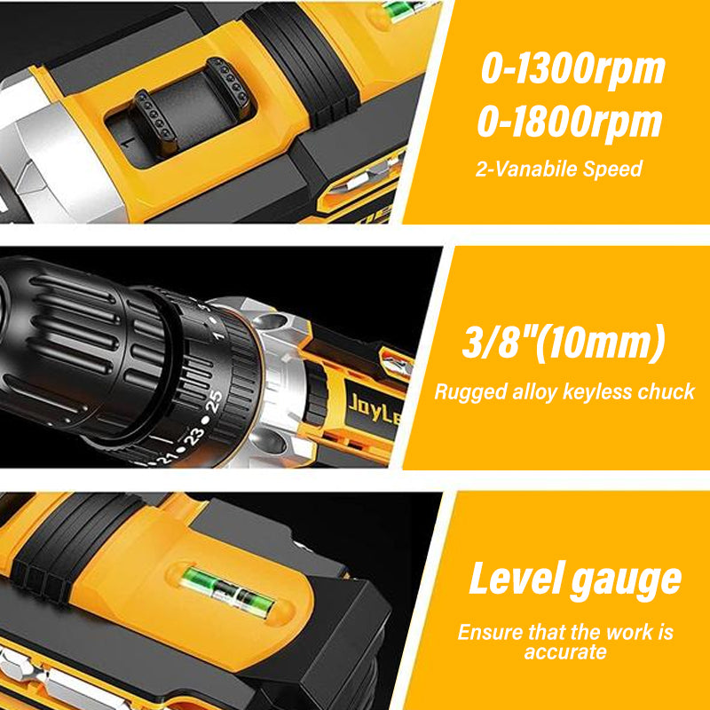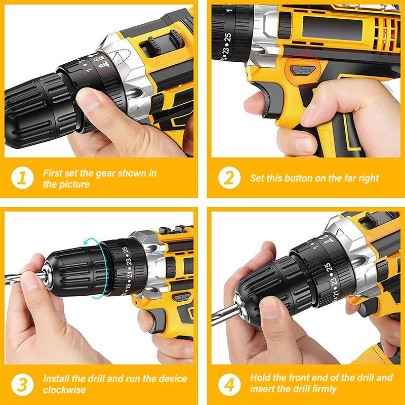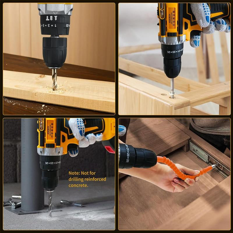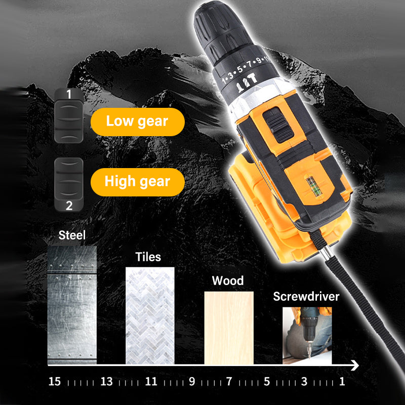 One-touch operation with improved safety: Integrated with onward/reverse switching and a safety lock, our cordless electric drill ensures quick and secure operation. This design is especially suitable for home improvement tasks and high-intensity engineering tasks, maintaining stability and safety in demanding work environments.