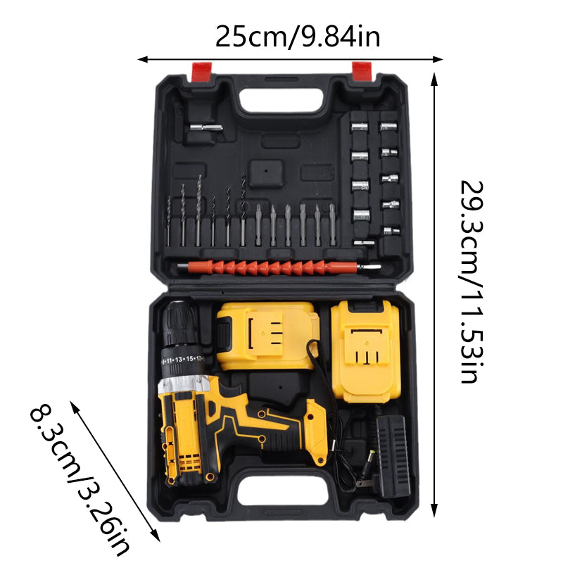 Precision control: With its 2-speed gearbox (0-1300/0-1800 RPM) and 25+3 torque settings, this cordless electric drill set ensures optimal control for every application, whether you're drilling or screwdriving.