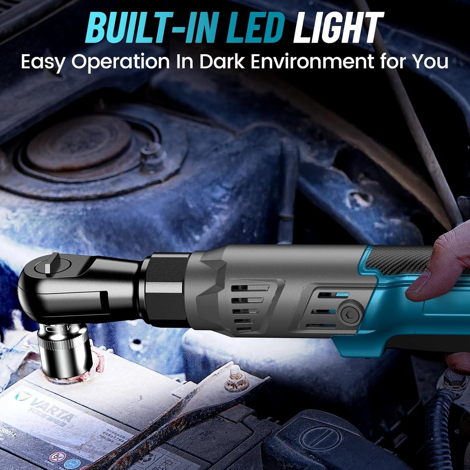 Bright built-in LED: The electric ratchet wrench's built-in LED shines light directly onto the position where the socket is doing its work – great for those dark recesses where bolt heads are often lurking. This provides clear visibility in low-light, narrow, or hard-to-reach areas.