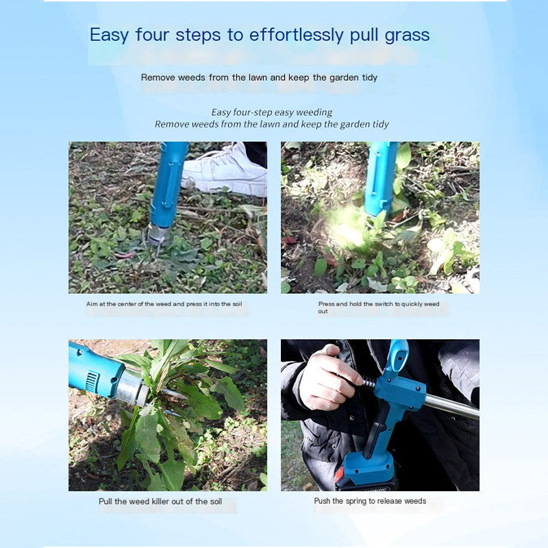 Lithium batteries: Large capacity total batteries for replacement to use, long-lasting power, continuous weeding, delivers extended runtime for uninterrupted weeding. No cords, no limits, easily pull out hundreds of weeds on a single charge. More power, less hassle.