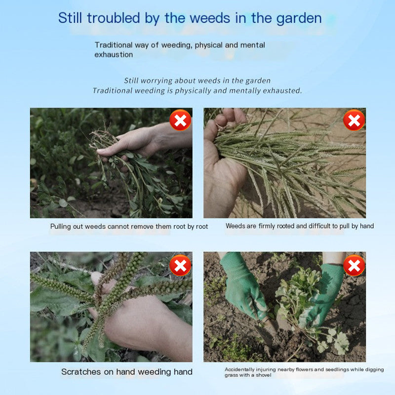 Scope of application: Perfect for eliminating various weeds and their roots, such as thistles, crabgrass, dandelions, blackberries, etc. Suitable for all soil types, especially after heavy rain or watering.