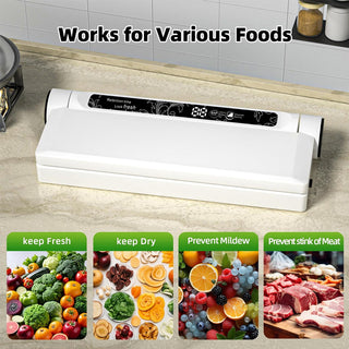 Wide range of applications: Versatile enough to handle meat, seafood, fruits, vegetables, nuts, bread, snacks, and more. This vacuum sealer effectively seals both wet and dry items to meet all your food preservation needs.