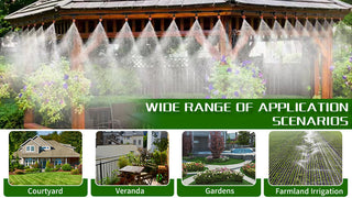 - The automatic irrigation kit is ideal for mist cooling, lawn irrigation, patios, rooftop cooling, agriculture, vegetable gardens, greenhouses, flower beds, pool misting, and general watering needs.