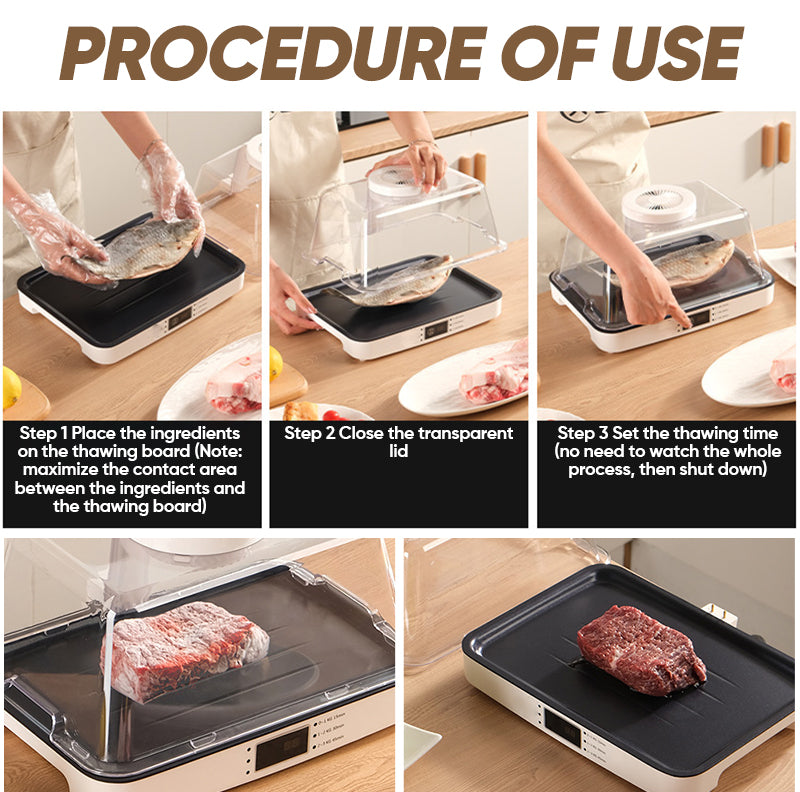 • Easy to clean: Equipped with a convenient drainage tray, this defrosting machine can automatically drain and defrost water, keeping your dining table clean. The main unit can be easily disassembled with a single click, making it easy for you to clean both the cover and the tray.