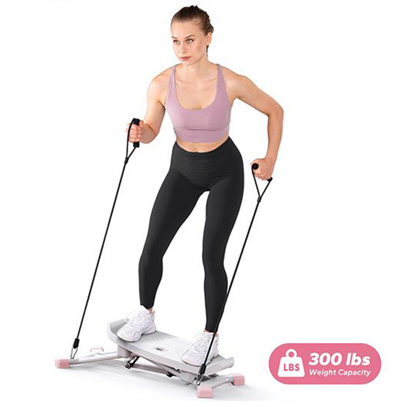Just got this mini stepper last week and I'm obsessed! The side-to-side motion is so smooth and really engages my thighs. Love that it's quiet enough to use while my baby naps. The resistance bands are a nice bonus for arm workouts too. Only wish the display was backlit!