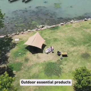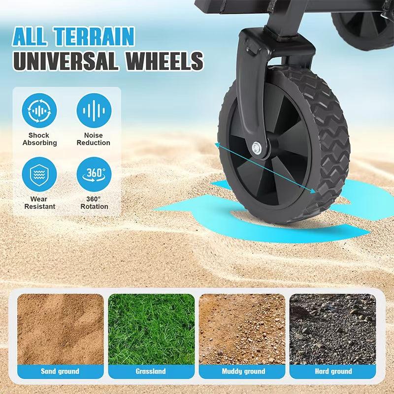 • 4-Piece Set: Outdoor Camping Cart + 9-Foot Beach Umbrella + Outdoor Folding Storage Table + Beach Towel