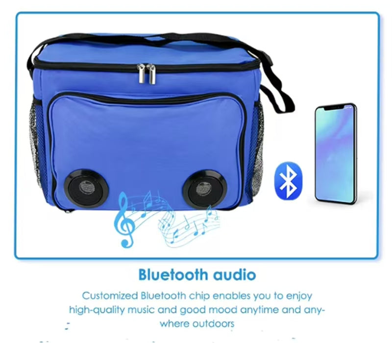 • Bluetooth Cooler Bag: The built-in customized Bluetooth chip delivers a stable and seamless connection experience, eliminating stuttering and delays. Whether it's pop music, classical melodies, or high-energy rock, it presents high-fidelity sound quality, immersing you as if you were at a live music venue, allowing you to unleash your energy and ignite your joy. With its extra-large capacity design, it not only holds your favorite drinks and snacks but also provides ample power for your devices like smartphones and tablets, ensuring you never have to worry about running out of battery, so you can fully enjoy your outdoor moments.