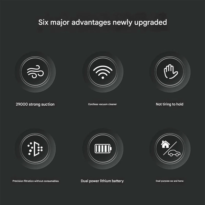 Dual filtration system: The car vacuum portable cordless vacuum cleaner is equipped with an upgraded dual filtration system that prevents suction loss and clogging. It has two reusable filters, the steel filter effectively filters large particles of debris and the washable HEPA filter effectively filters tiny particles and dust to prevent damage to the motor. One-touch dust removal design makes cleaning easier. Easily empty the dust collection cup with a single click.