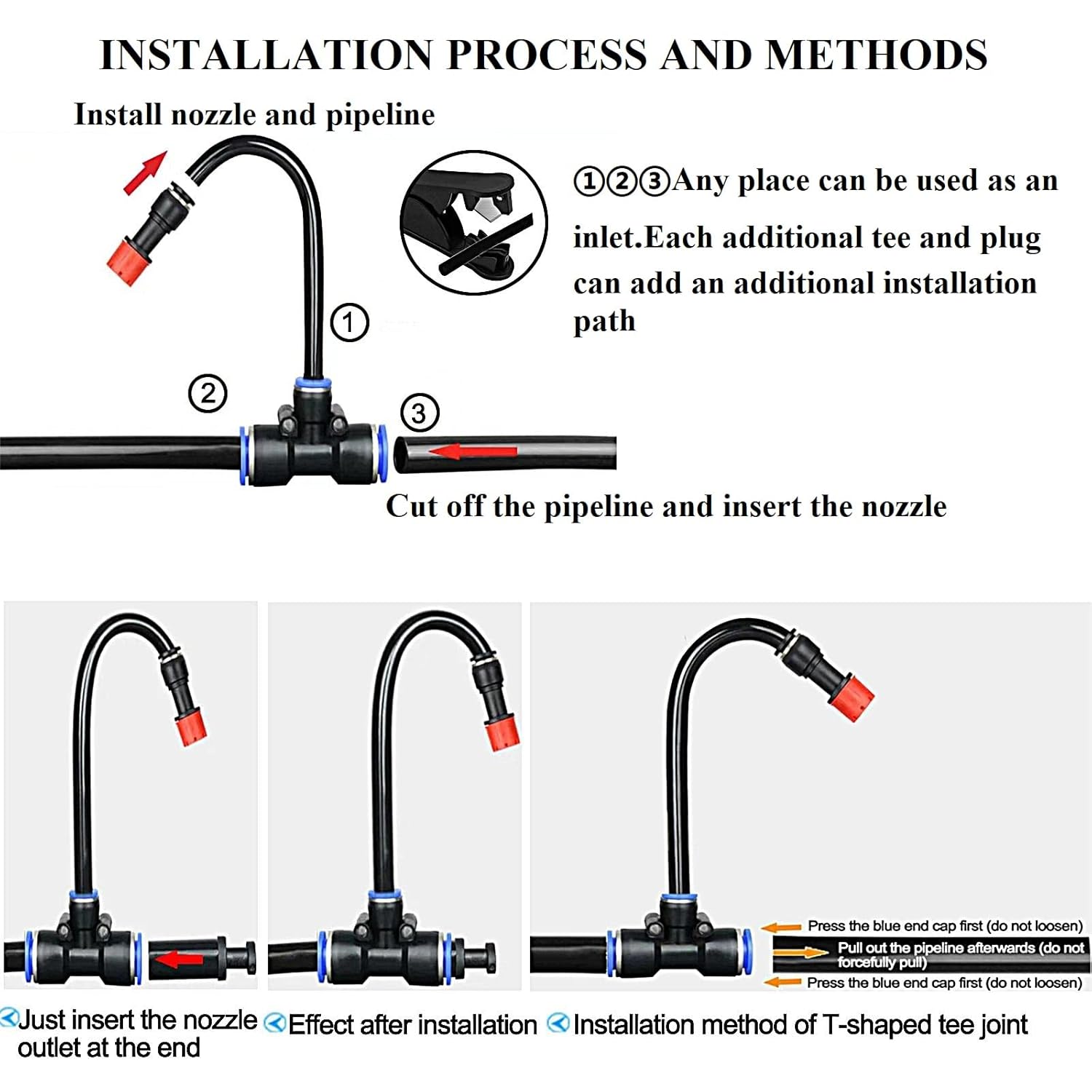 Wide application: With a wide range of applications, this new quick connector automatic drip irrigation kit is highly versatile. You can place it on the ground, fasten it to a fence, or hang it on a flower bed in the air. It can be used in courtyards, lawns, roof cooling systems, agriculture, vegetable gardens, swimming pool spray cooling systems, greenhouses, and for watering garden plants, and more.