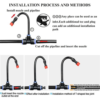 Easy installation and disassembly: The new quick connector garden watering system uses a pneumatic tee connection mode to replace traditional socket connection. The pipes and fittings of the Sakerplus garden irrigation system can be inserted into the pneumatic tee without heating fittings, making it more convenient and faster than using traditional irrigation systems. Even if a connection is made incorrectly, it can be disassembled and reconnected.