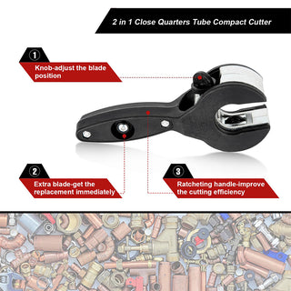 • Wide application: Ratcheting Tubing Cutter is a handy tool for cutting copper, PVC, and soft metal pipes in tight spaces. It can cut tubing from 1/4" to 7/8" (6-23mm) in diameter with ease and precision.