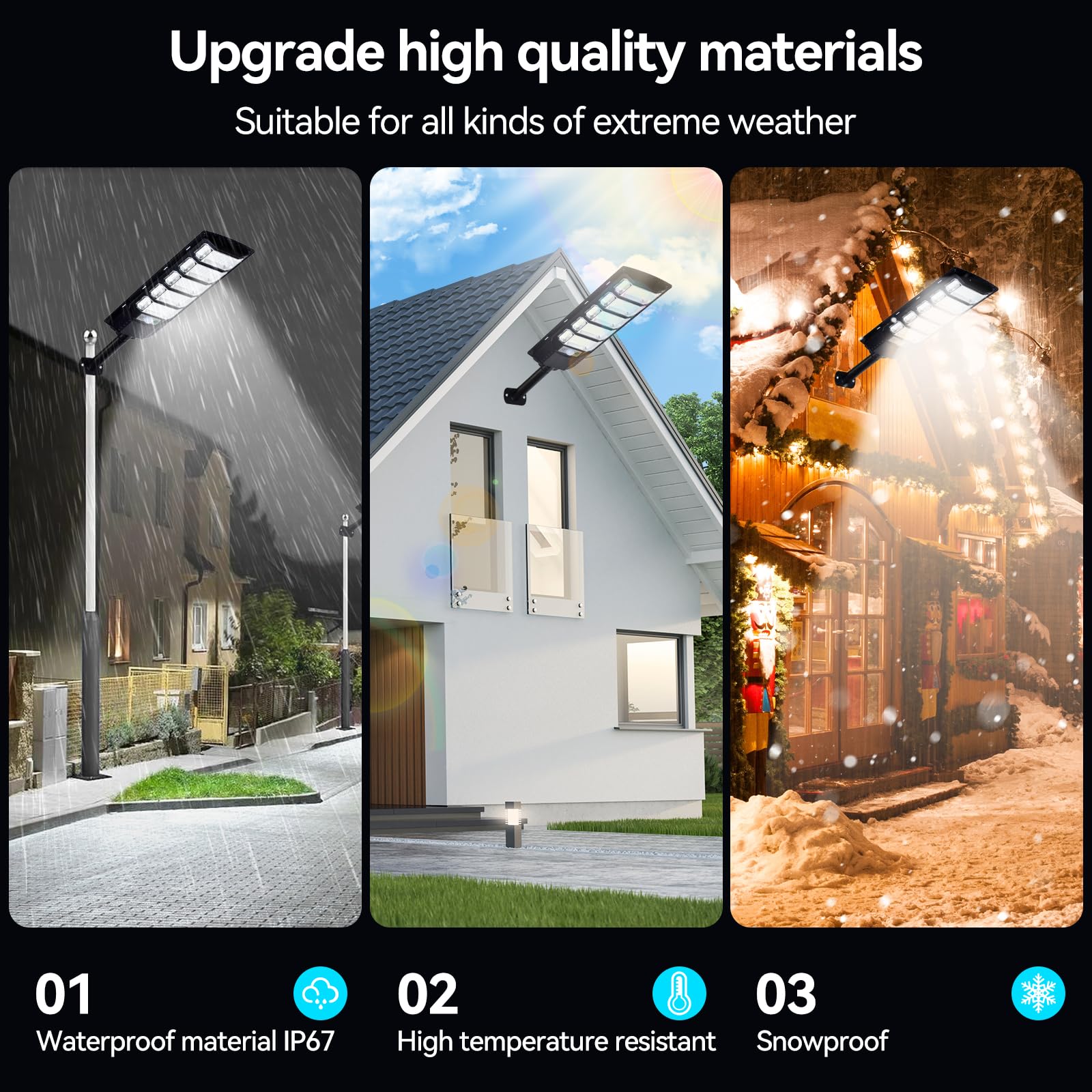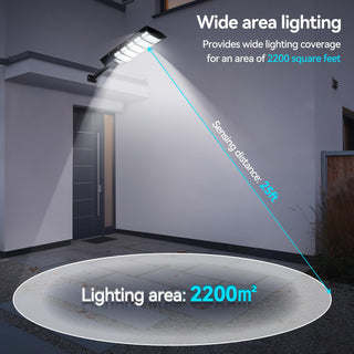• Super bright illumination: Equipped with 12 arrays of 504 LEDs, this light casts a powerful 12,000 LM glow, brightly illuminating your outdoor spaces.