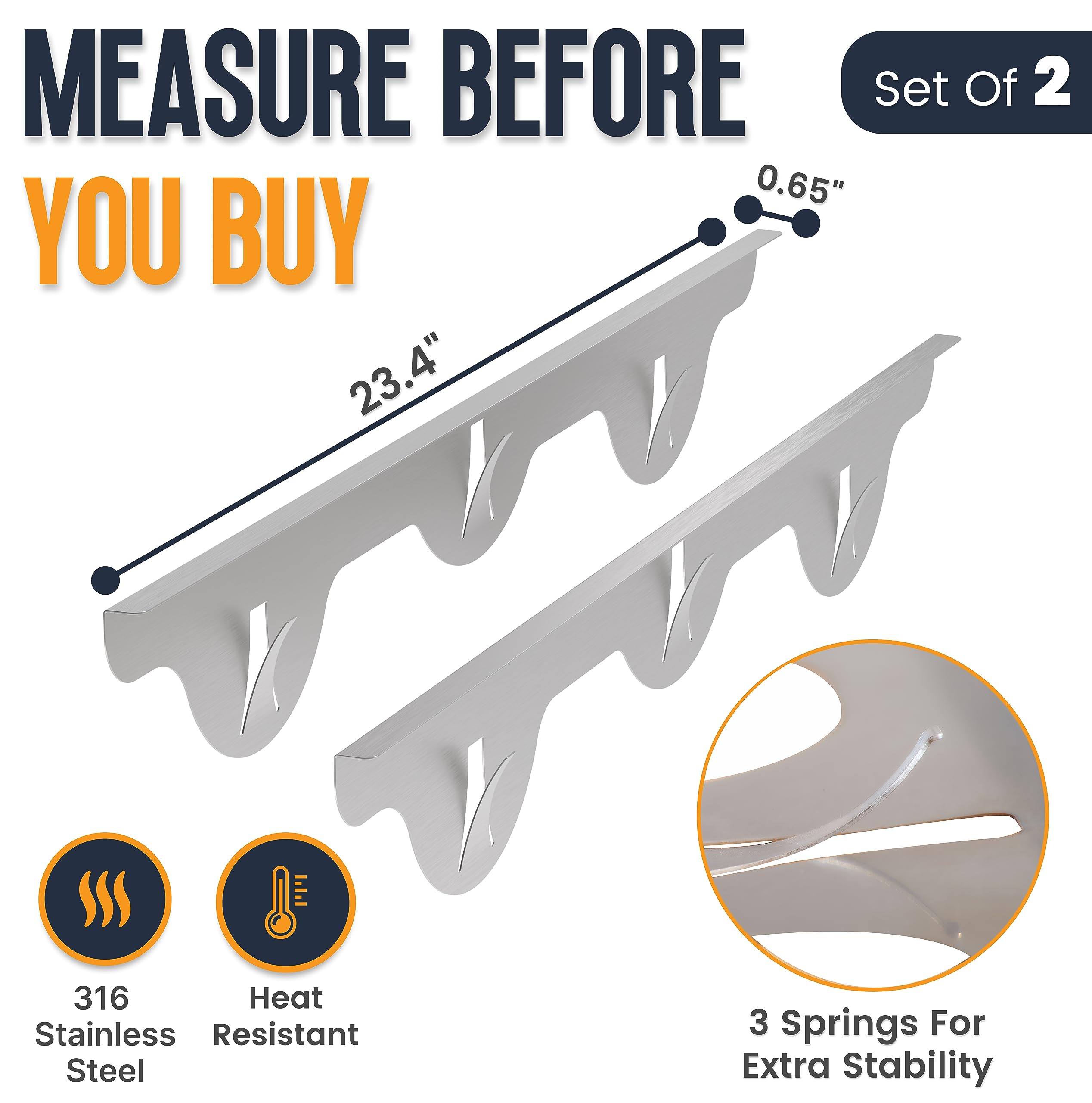 The 3-spring design really works - these don't budge during cooking but come out easily when I need to deep clean. Love that it matches my stainless appliances too. Pro tip: measure your gap carefully before ordering!