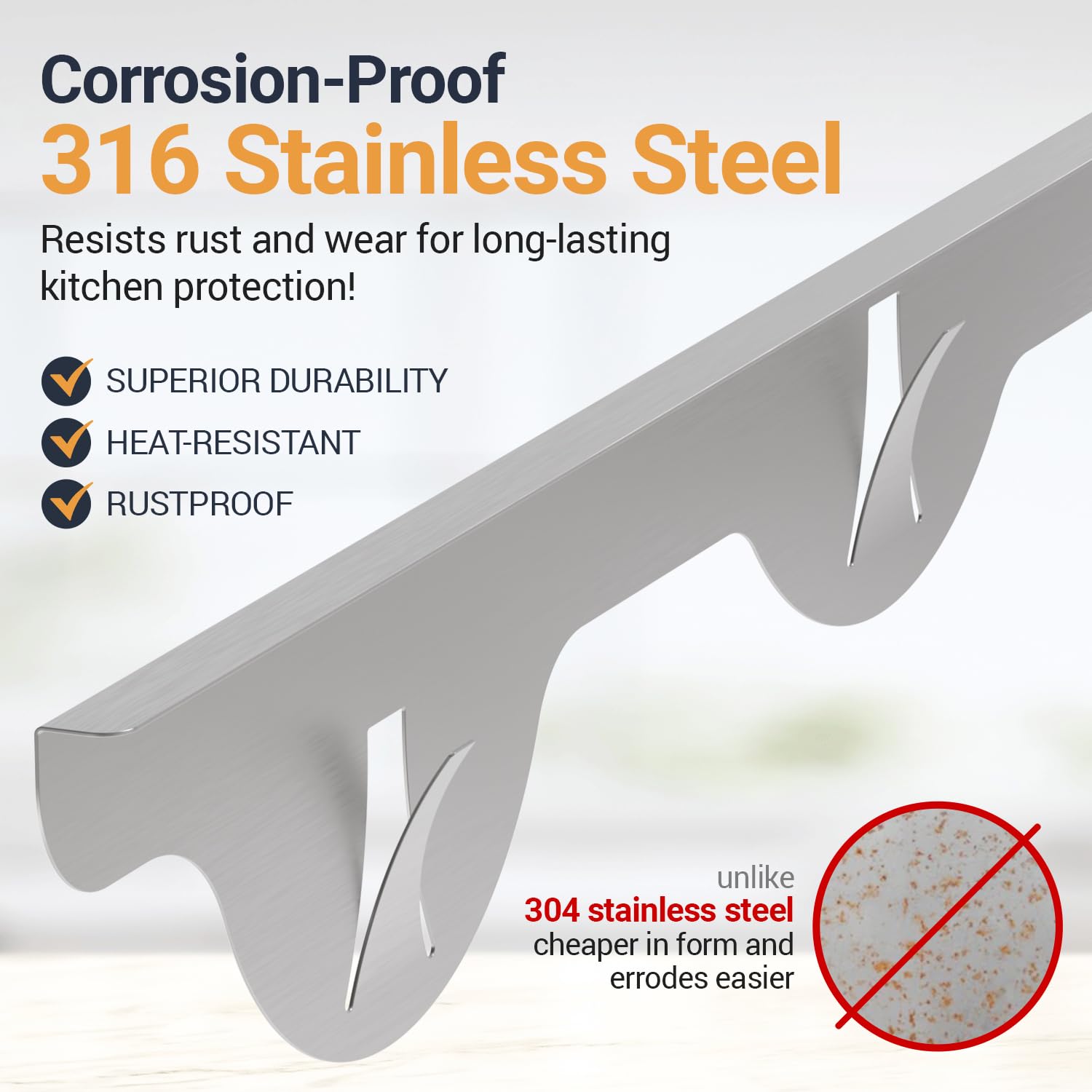 • Superior: Our newly released metal gap filler are made from high-quality 316 stainless steel, renowned for its exceptional corrosion and heat resistance. This ensures an unmatched durability and strength that can resist even the harshest kitchen conditions, providing you with a product that is truly built to last. Perfect for stove gap guards or stove side gap covers.