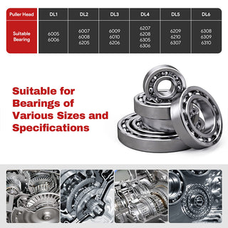 Applicable Models: Compatible with 6005 / 6006 / 6007 / 6008 / 6009 / 6010 / 6205 / 6206 / 6207 / 6208 / 6209 / 6210 / 6305 / 6306 / 6307 / 6308 / 6309 / 6310. Additionally, the three-jaw pullers can remove various types of bearings, gears, and components.
