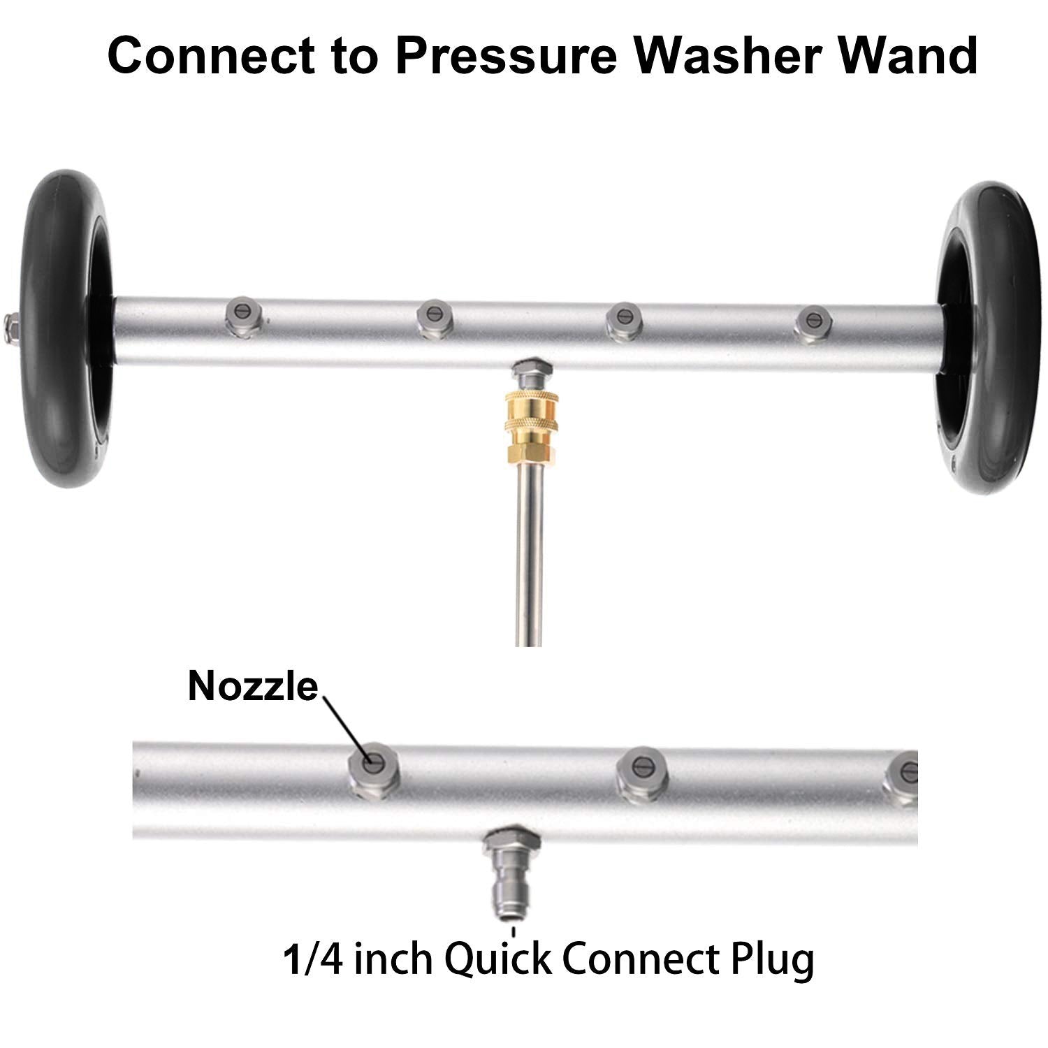 Tips: The undercarriage cleaner’s pressure range is 1500 PSI to 4000 PSI; it works better when the pressure is 2500 PSI or higher. Please make sure your working pressure is HIGHER than 1500 PSI.