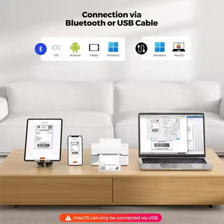 • Bluetooth connectivity: The shipping label printer seamlessly switches between Bluetooth and USB connections. Print wirelessly via the app for iOS/Android, or connect to Windows, Mac, ChromeOS and Linux systems via USB.
