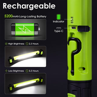 Love how versatile this is - used it in the garage, then took it camping. The 360° swivel is genius for getting light exactly where you need it. The green color makes it easy to spot in my messy toolbox too!